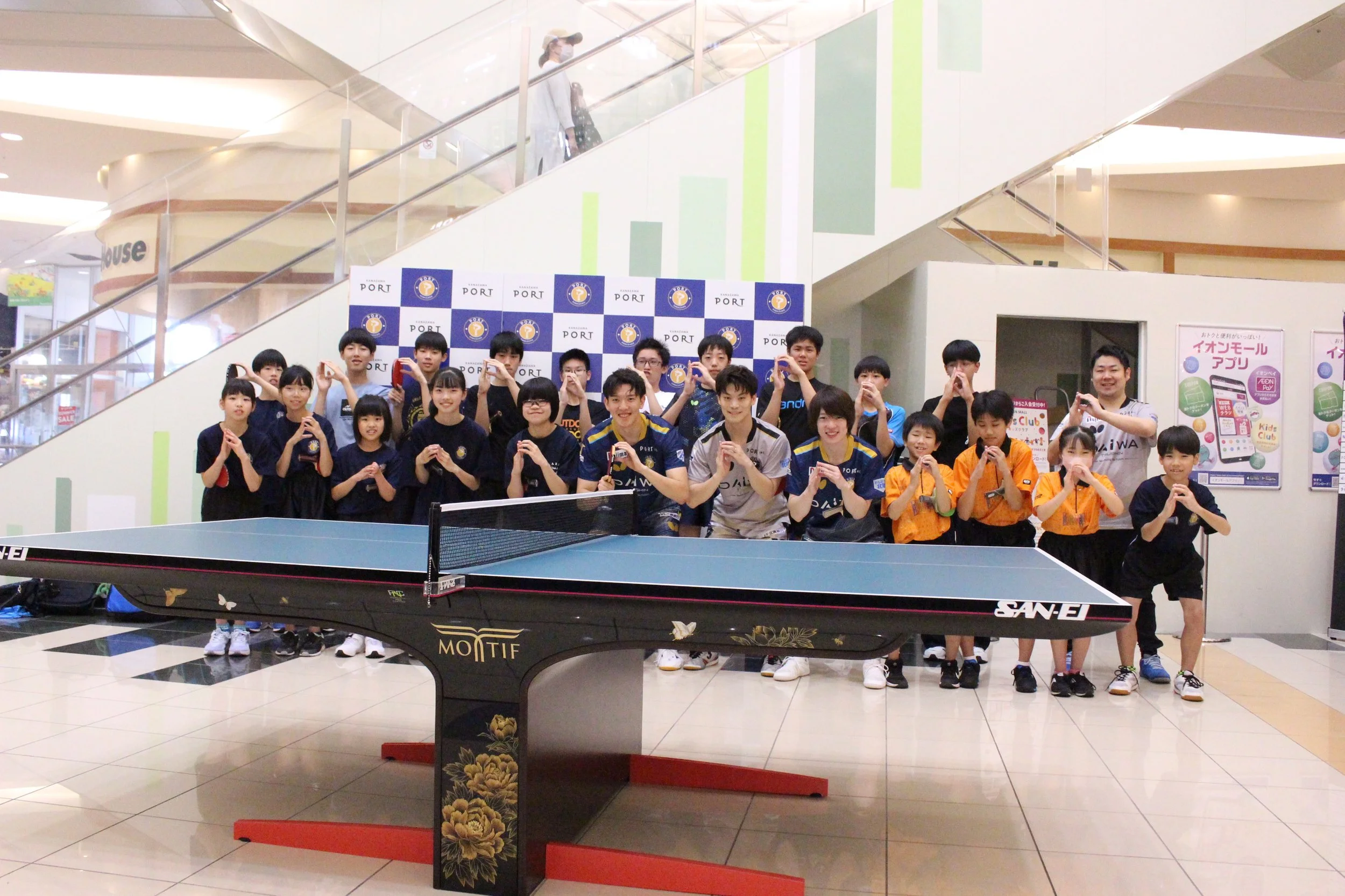 監督・選手による今シーズン決意表明の後、集まっていただいたファン・スポンサーの皆様、地元卓球クラブの皆様に向けた卓球講習会を行いました。