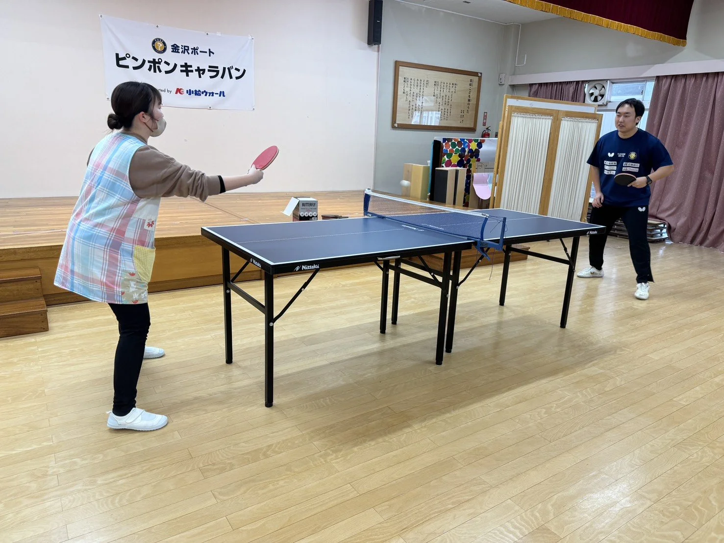 「金沢ポート ピンポンキャラバン」は、プロ卓球チーム・金沢ポートの選手やスタッフが地域の児童クラブや小中学校を訪問し、楽しく卓球を体験してもらうプロジェクトです。