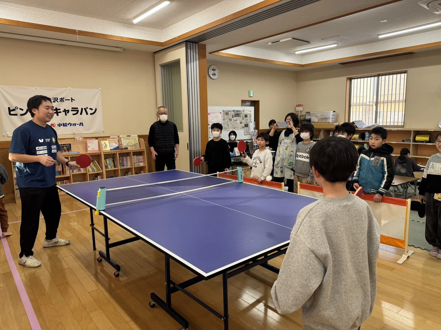 プロ卓球チーム・金沢ポートは、2月5日(木)、石川県小松市の「国府児童クラブ」を訪問し、地域連携活動「金沢ポート ピンポンキャラバン」を実施しました。