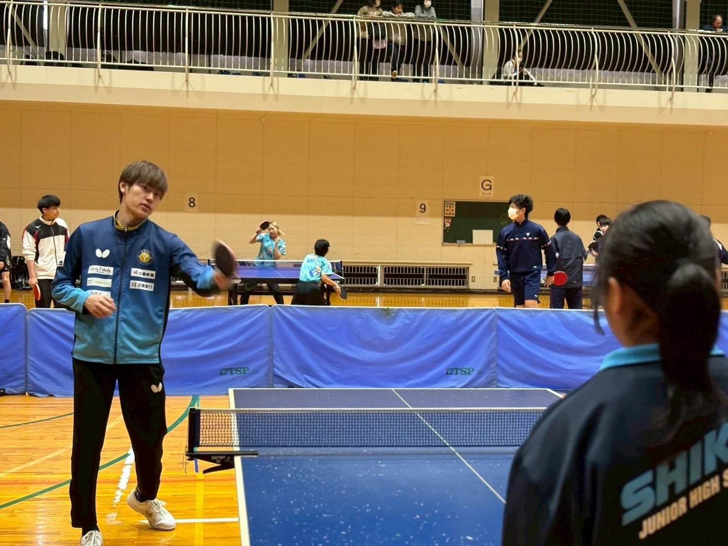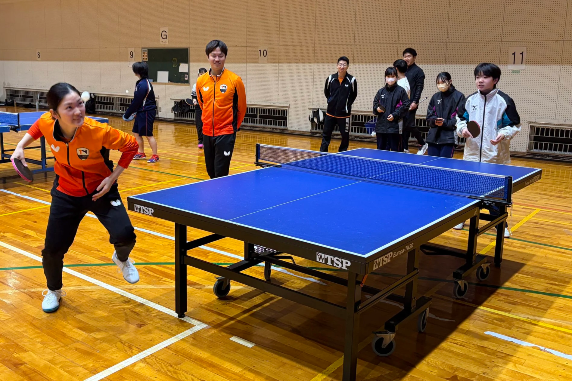 2026年3月30日、能登半島地震で被害を受けた穴水町を、世界卓球(釜山)女子団体2位の木原美悠選手(トップおとめピンポンズ名古屋)、金沢ポートから小林広夢らが訪れ、復興支援として卓球講習会を行いました。