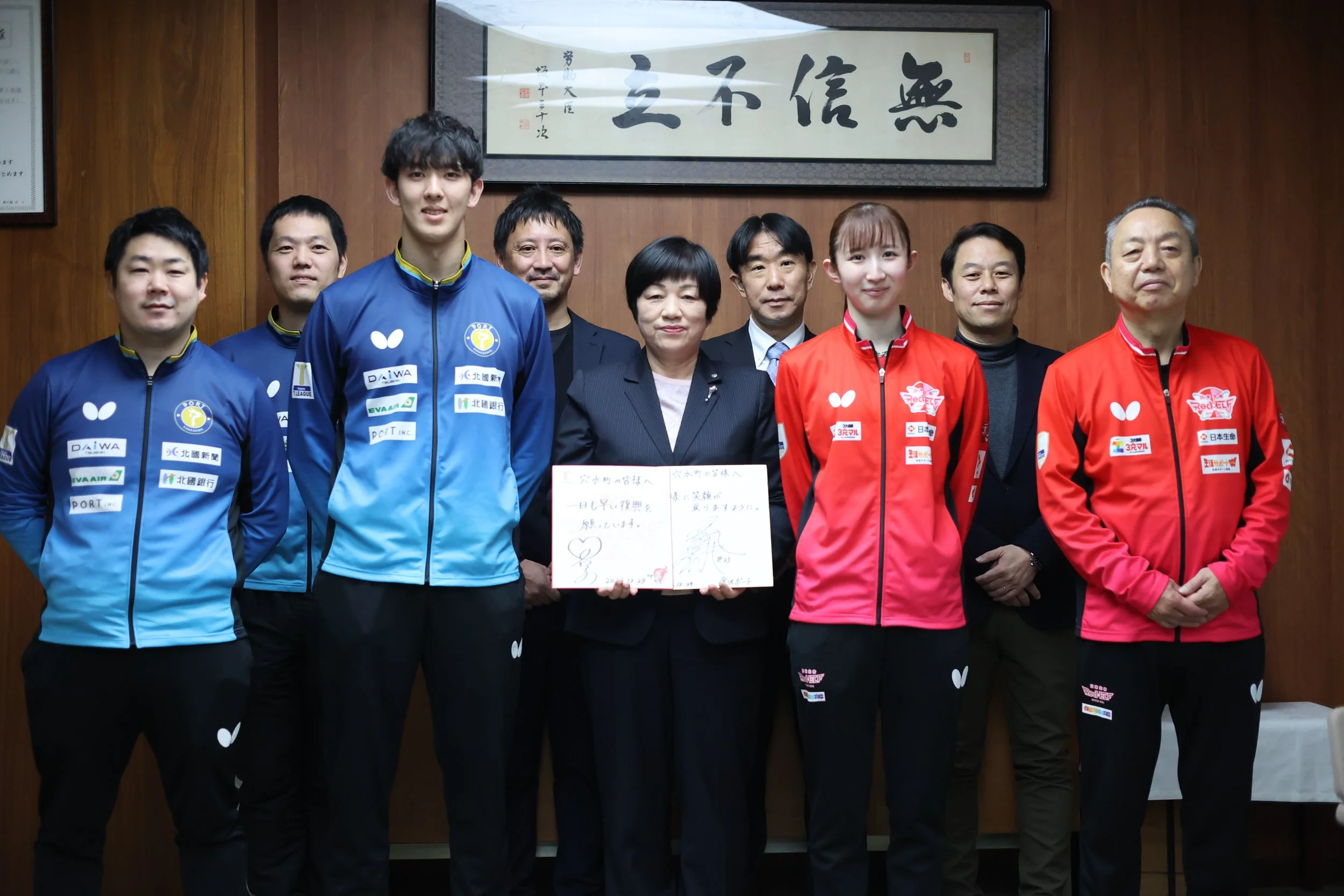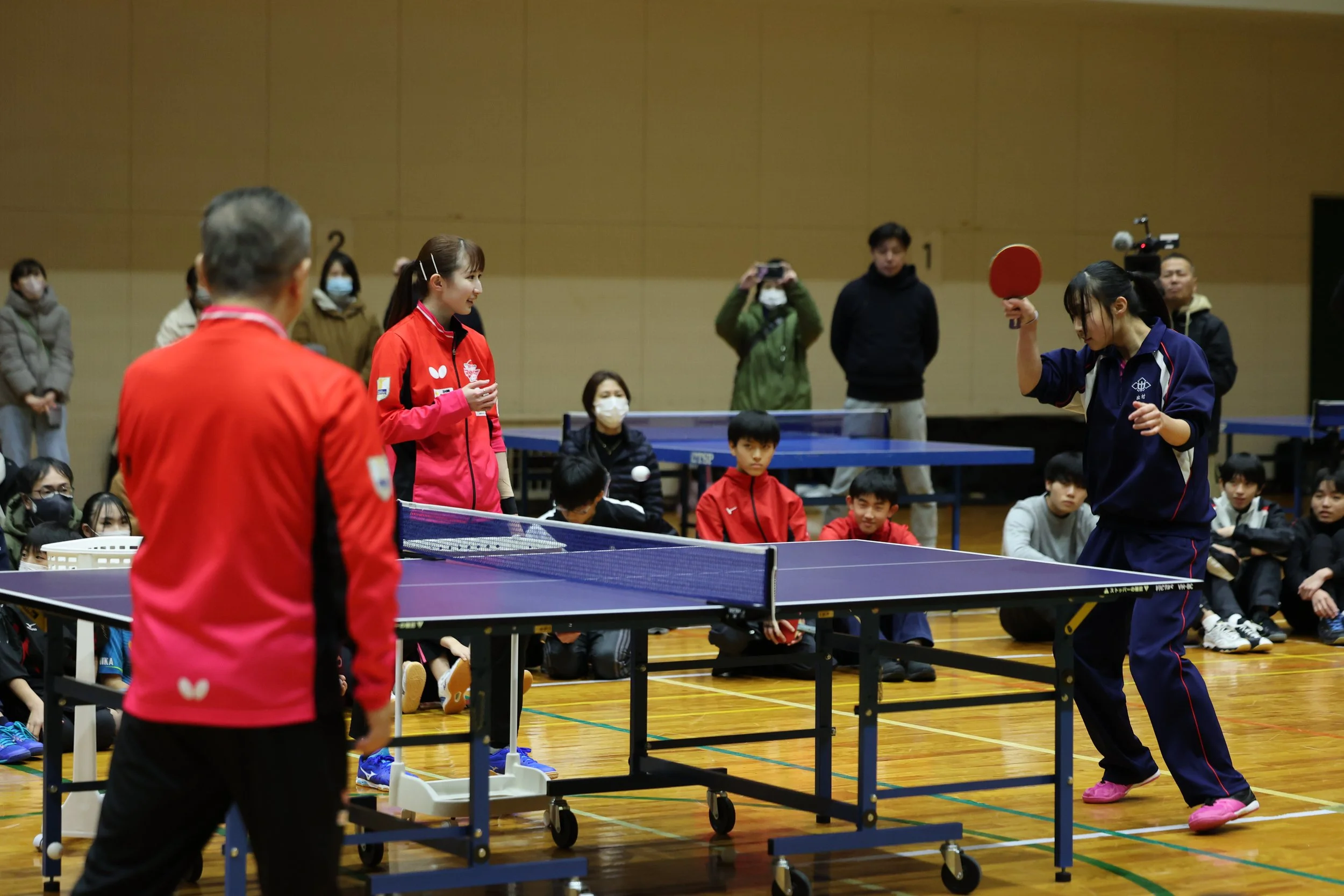 2024年12月29日、能登半島地震で被害を受けた穴水町を、パリ五輪メダリストの早田ひな選手(日本生命レッドエルフ)、金沢ポートから五十嵐史弥らが訪れ、復興支援として卓球講習会を行いました。