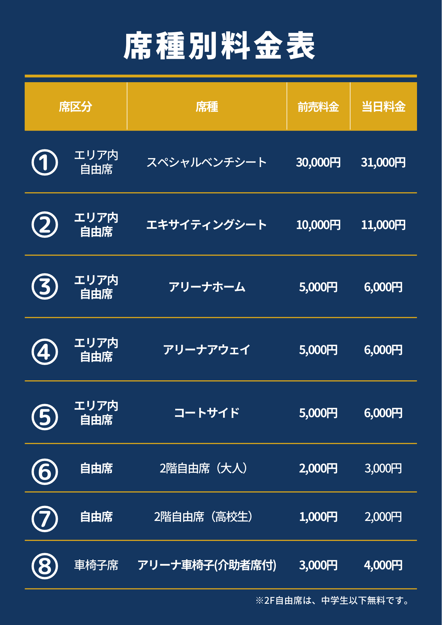 事前の申し込みがなく、ご希望の席種が完売していた場合、お座席がご用意できないことがあります。