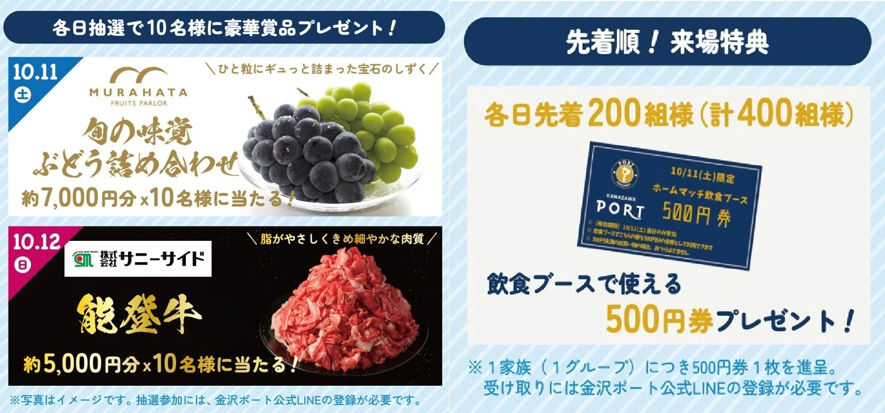 事前に金沢ポートの公式LINEアカウントを友だち登録していただき、ハーフタイムでMCが発表する『キーワード』をトーク画面に入力することで、抽選に参加可能です。
